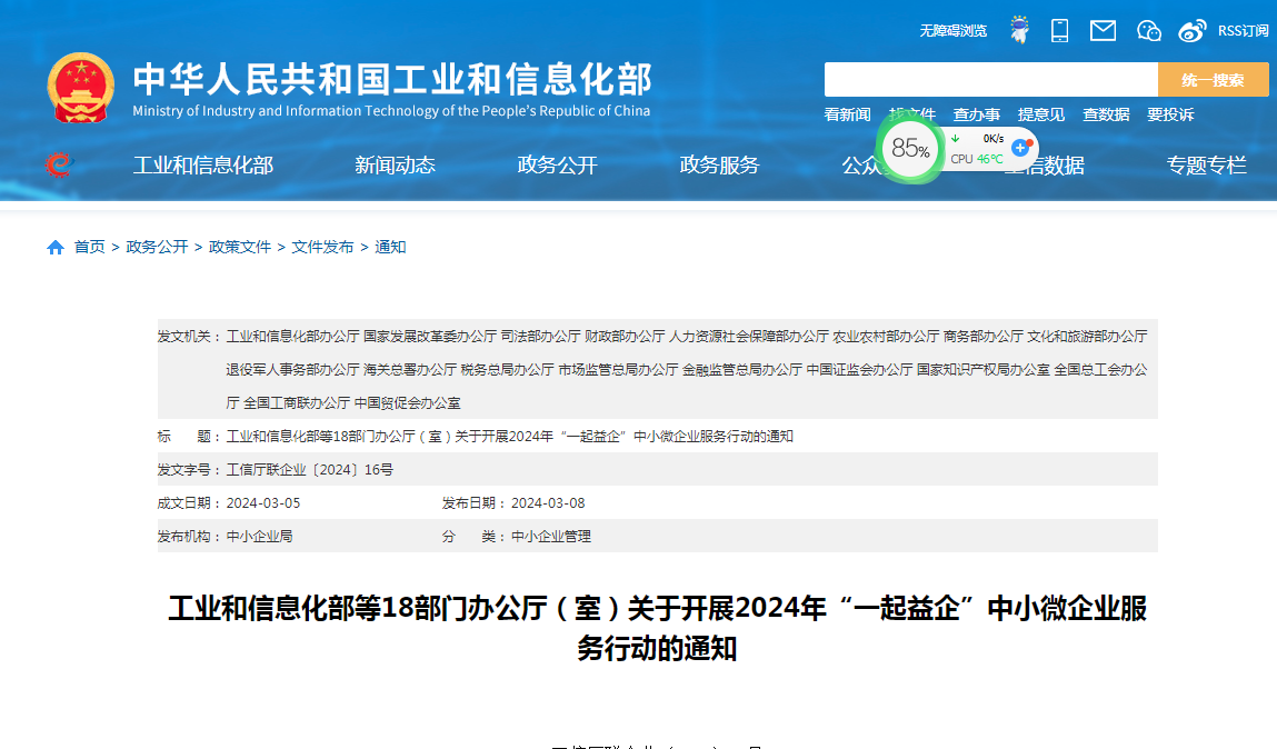 為助力中小微企業(yè)高質(zhì)量發(fā)展近日,工業(yè)和信息化部等18部門聯(lián)合印發(fā)通知,部署開展2024年“一起益企”中小微企業(yè)服務(wù)行動。服務(wù)行動貫穿2024年全年,并于6月組織開展“中小企業(yè)服務(wù)月”活動。