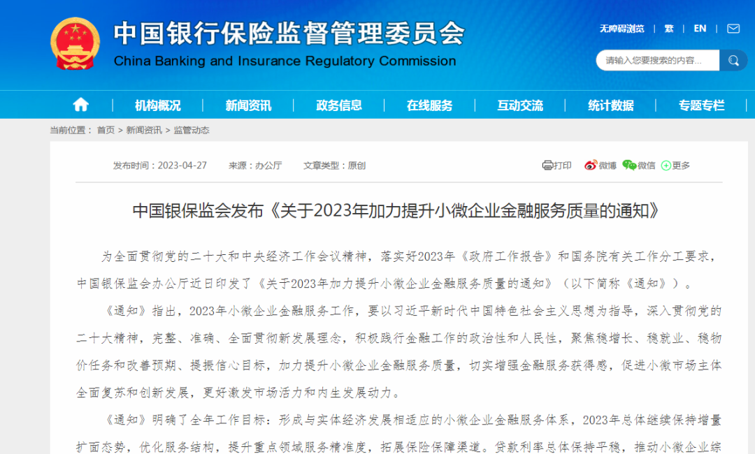 近日,中國(guó)銀保監(jiān)會(huì)辦公廳印發(fā)《關(guān)于2023年加力提升小微企業(yè)金融服務(wù)質(zhì)量的通知》(以下簡(jiǎn)稱《通知》)。